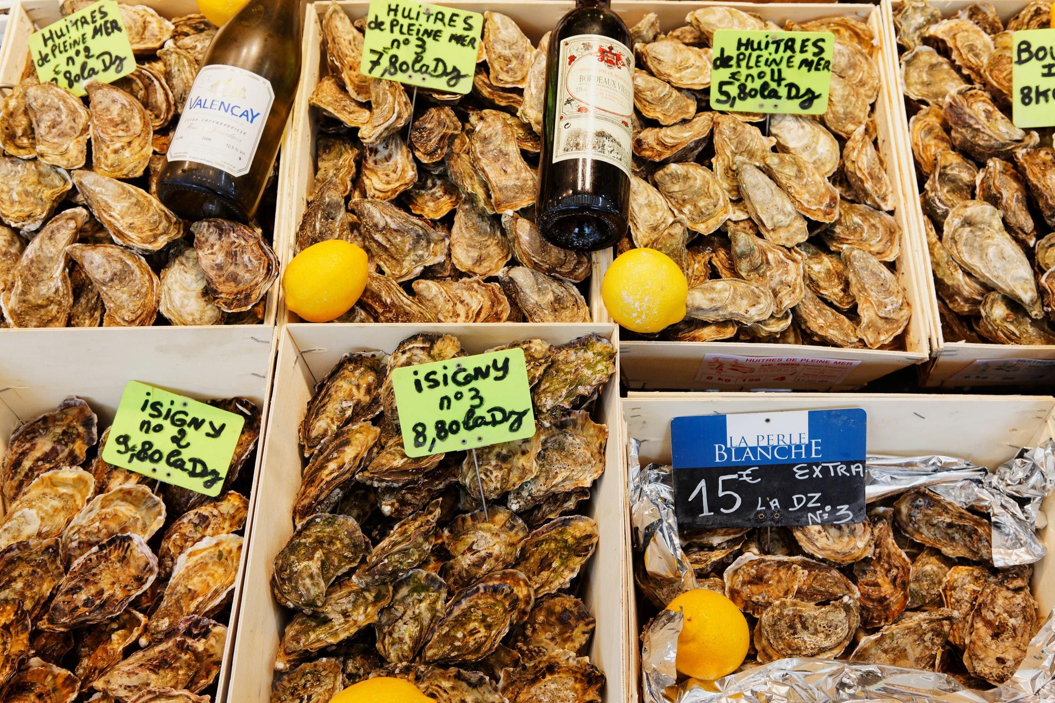 Seafood is another Normandy speciality. The cool waters off its long coastline provide a bounty of oysters, lobster, mackerel, sea bass and herring. Normandy King Scallops have a Label Rouge quality mark and are prized for their plump, sweet meat and creamy orange coral. Granville Bay Whelks PGI are another regional treat. Once in danger of extinction due to overfishing, these nutty, briny whelks now have PGI after local whelk fishermen joined forces to introduce quotas and commit to harvesting with sustainable methods. Bouchot mussels are also harvested traditionally and are grown on tall wooden poles off the Normandy coast.