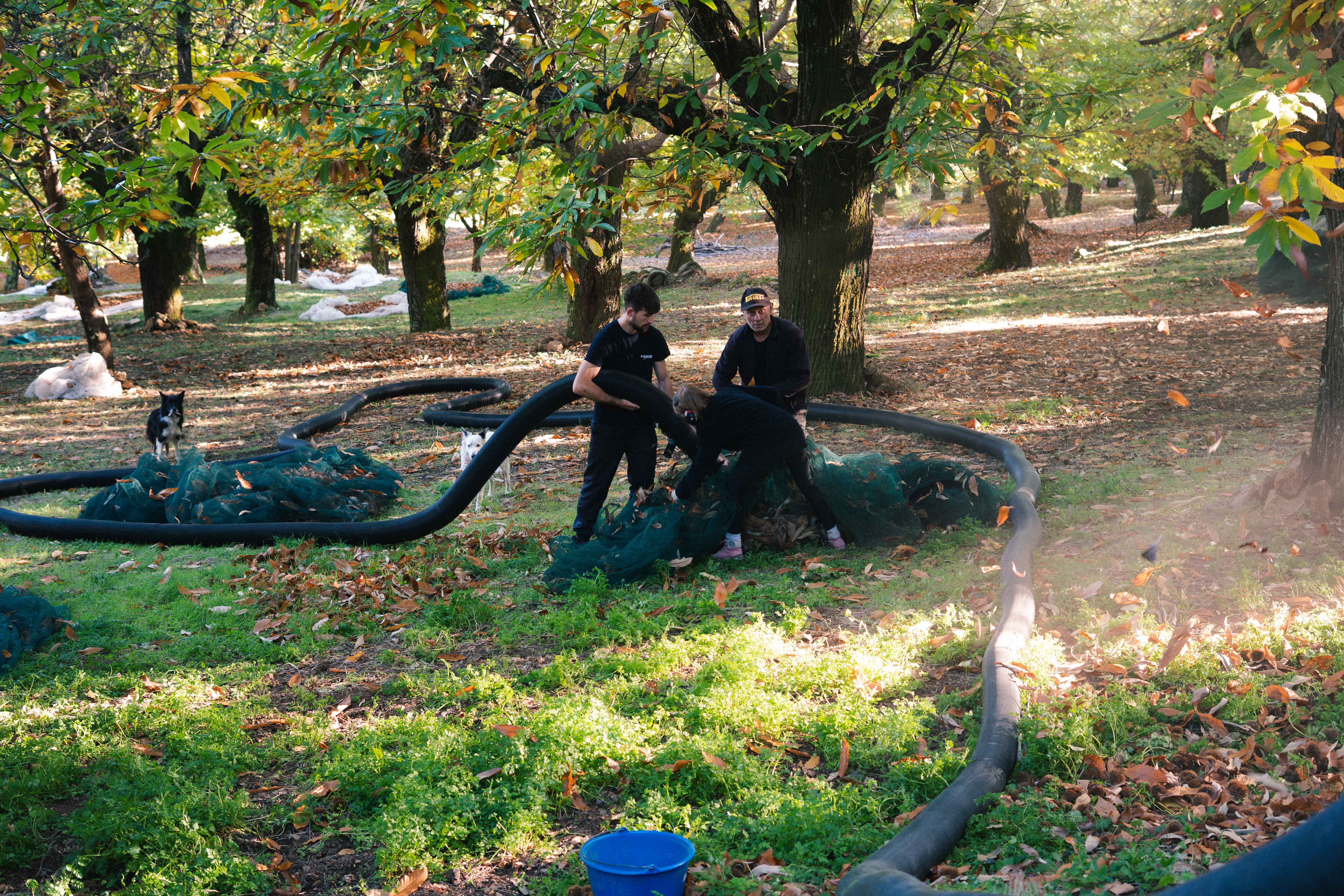 While tools have evolved over time, harvesting chestnuts remains a labour of love that requires patience. In autumn, producers install large nets beneath the trees. The fruit falls from the tree of its own accord and is then collected by hand or with portable suction harvesters.