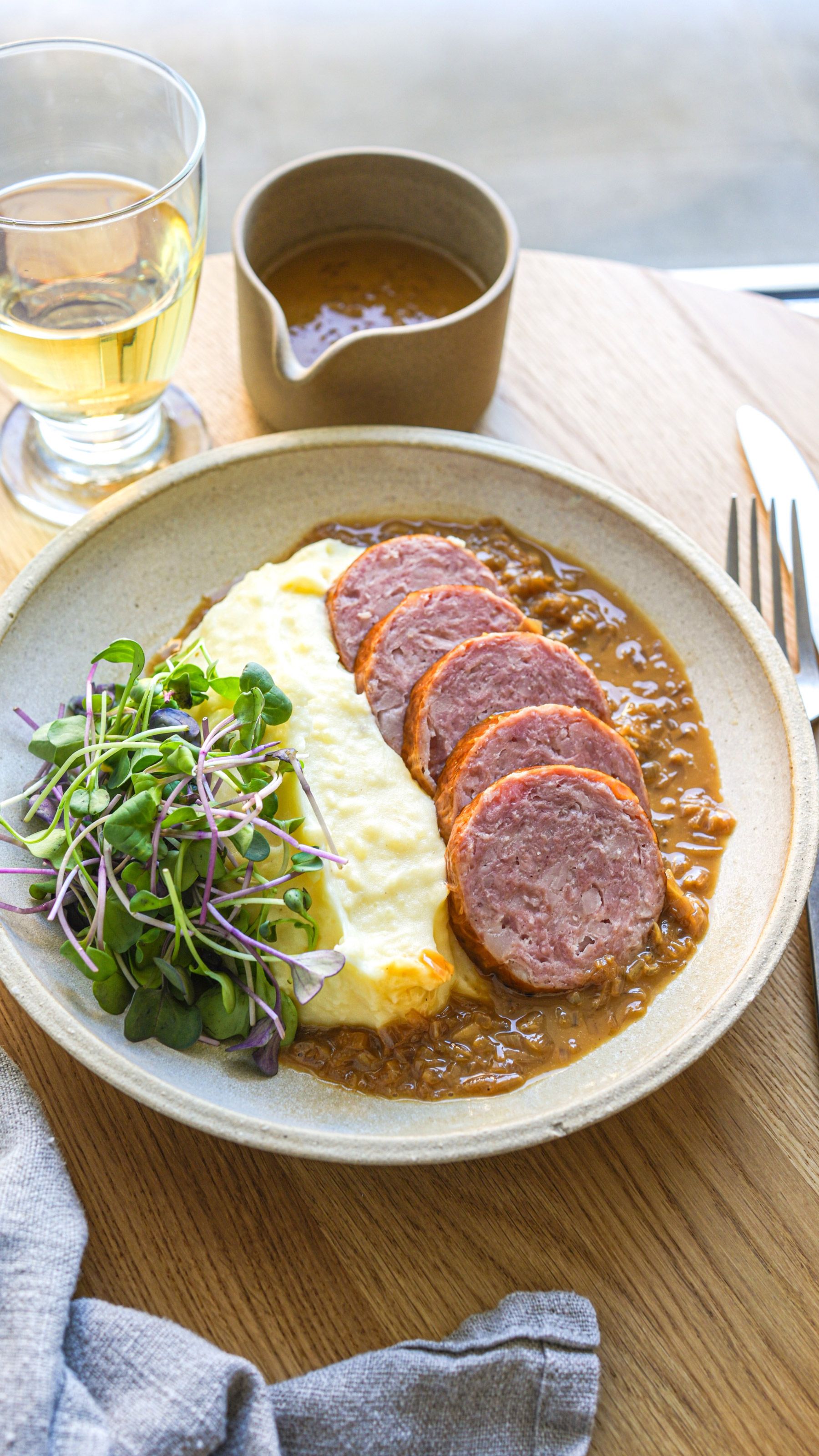 Hearty, comforting and a French bistro classic, saucisse purée pairs smoky Morteau sausage with creamy French mashed potatoes recipe for the ultimate home-cooked comfort dish.